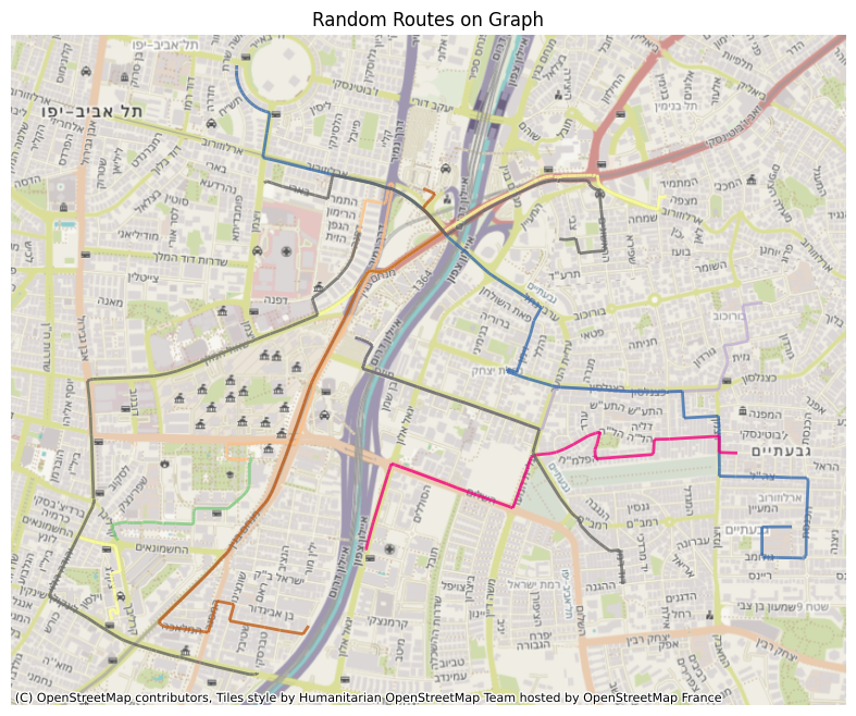 The first step is to generate a realistic route from the graph. This route serves as the ground truth that our algorithms will try to reconstruct.